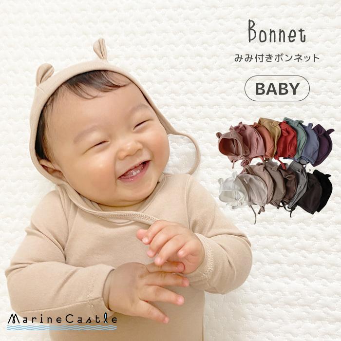 帽子 新生児 ベビー Baby みみ付き 耳付き 男の子 女の子 おしゃれ ポンポン付きボンネット オシャレ 赤ちゃん ポイント消化 プチプラ 6ヶ月 60cm 70cm 180 018 マリンキャッスル キッズ服 ベビー 通販 Yahoo ショッピング